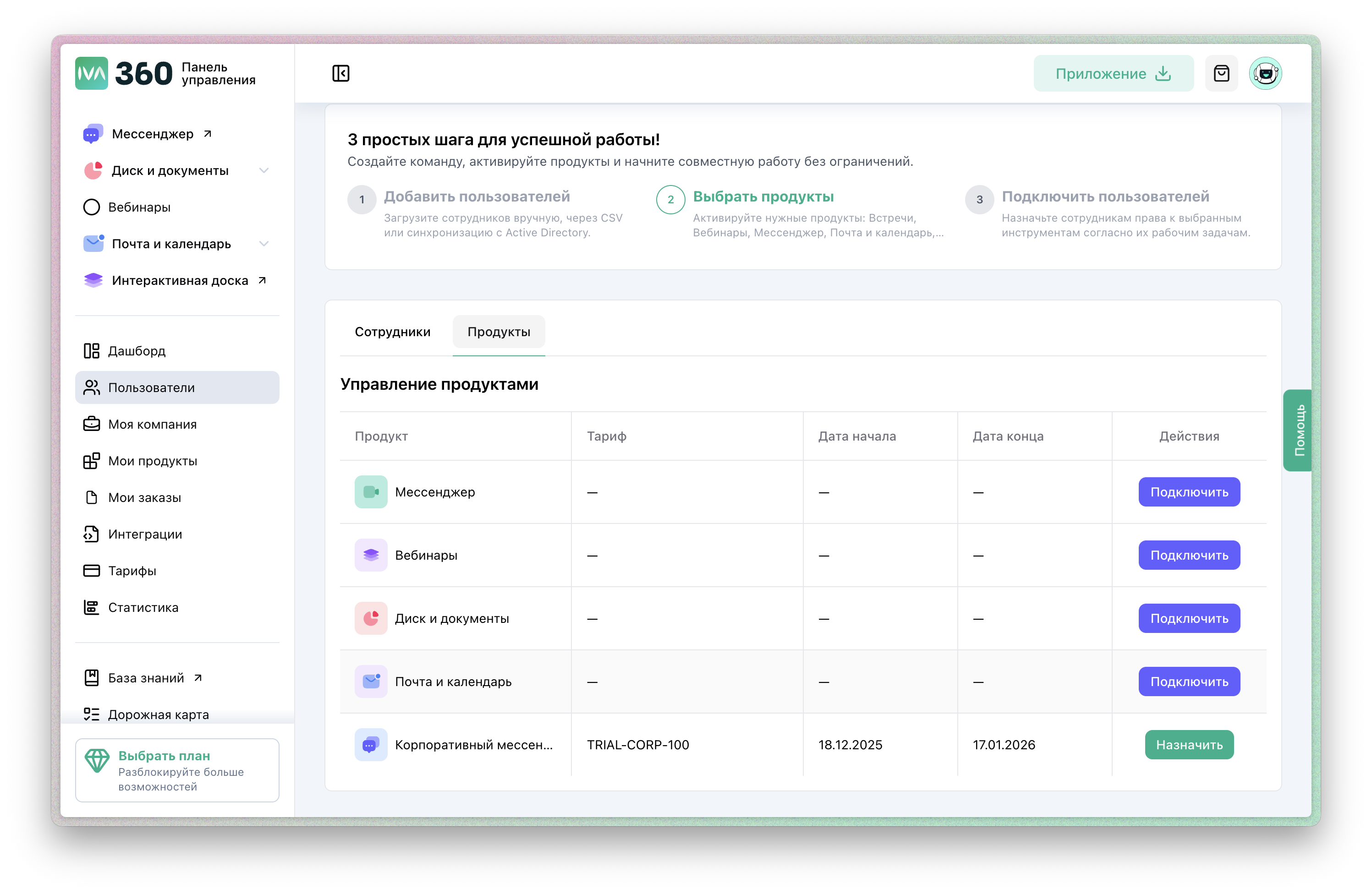 - Если вы видите потенциал для вашего бизнеса, оформите подписку на коммерческий тариф до окончания пробного периода, чтобы избежать перерыва в использовании платформы.