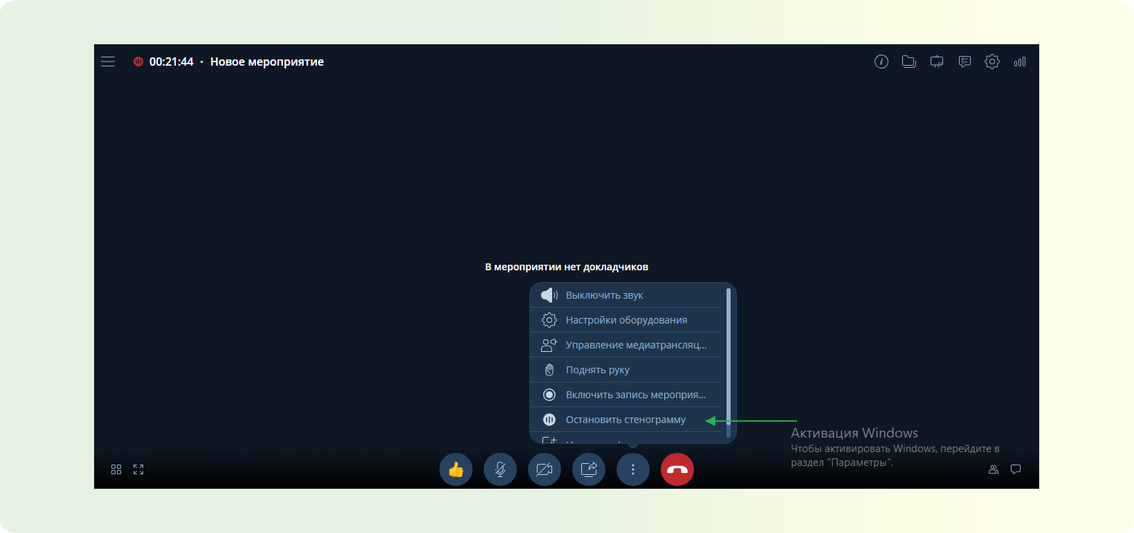 СПОСОБ 2: Ручное отключение стенографирования мероприятия.