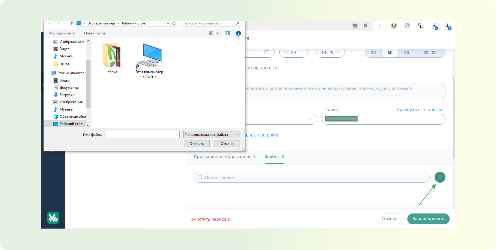 Как добавить файлы при планировании мероприятия