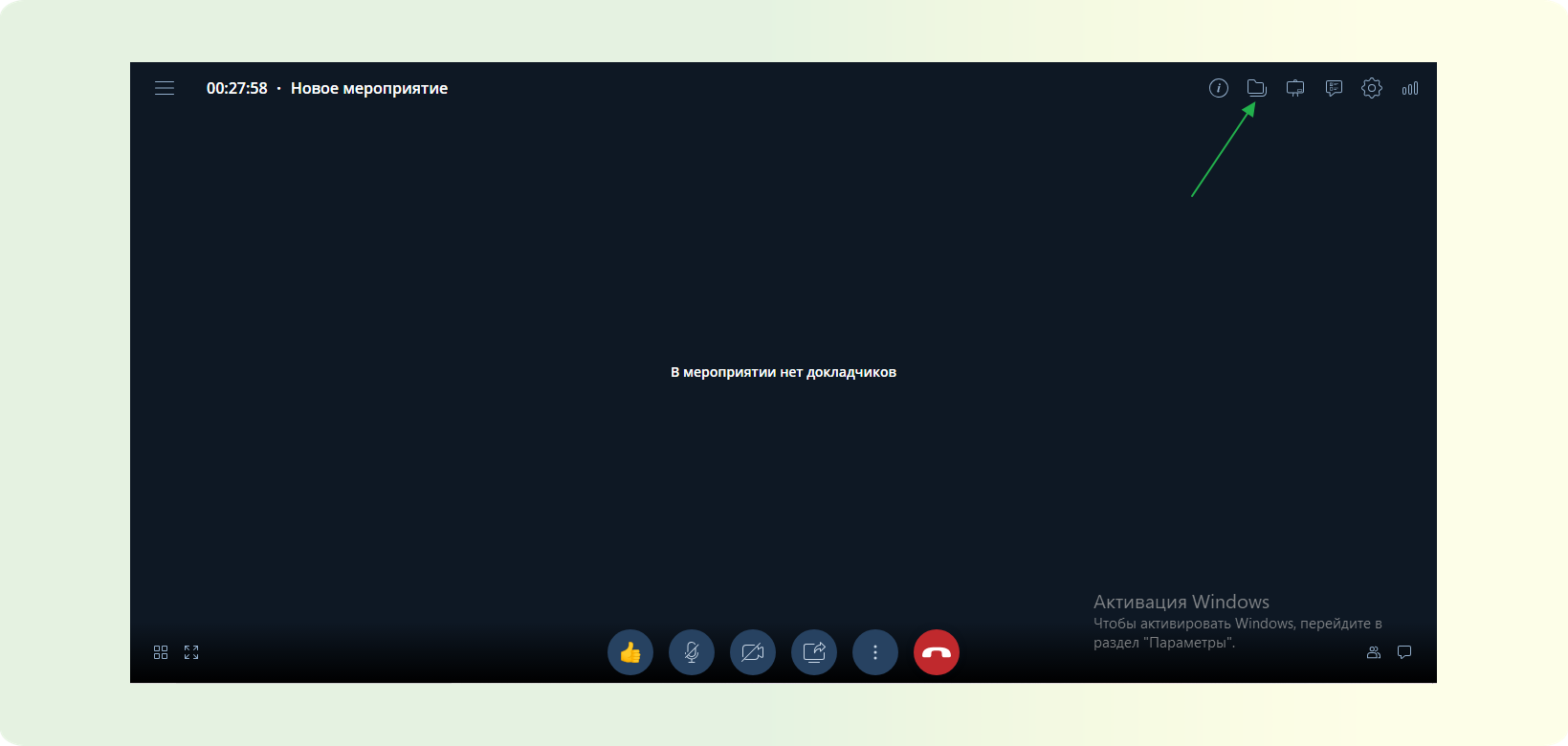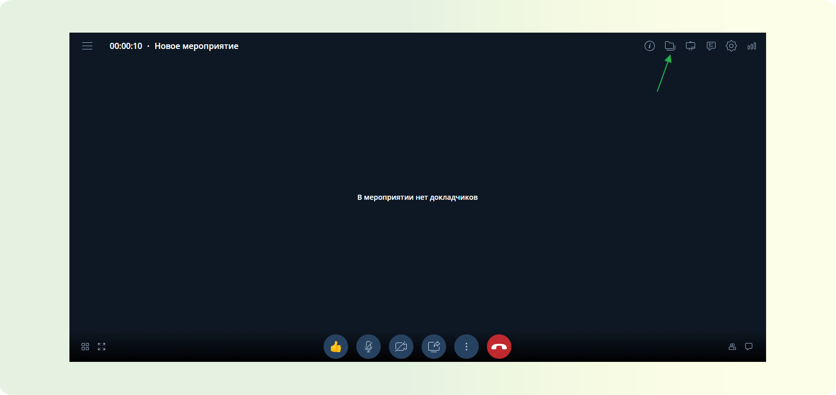 ШАГ 1: На верхней панели управления мероприятием найдите кнопку “Файлы”