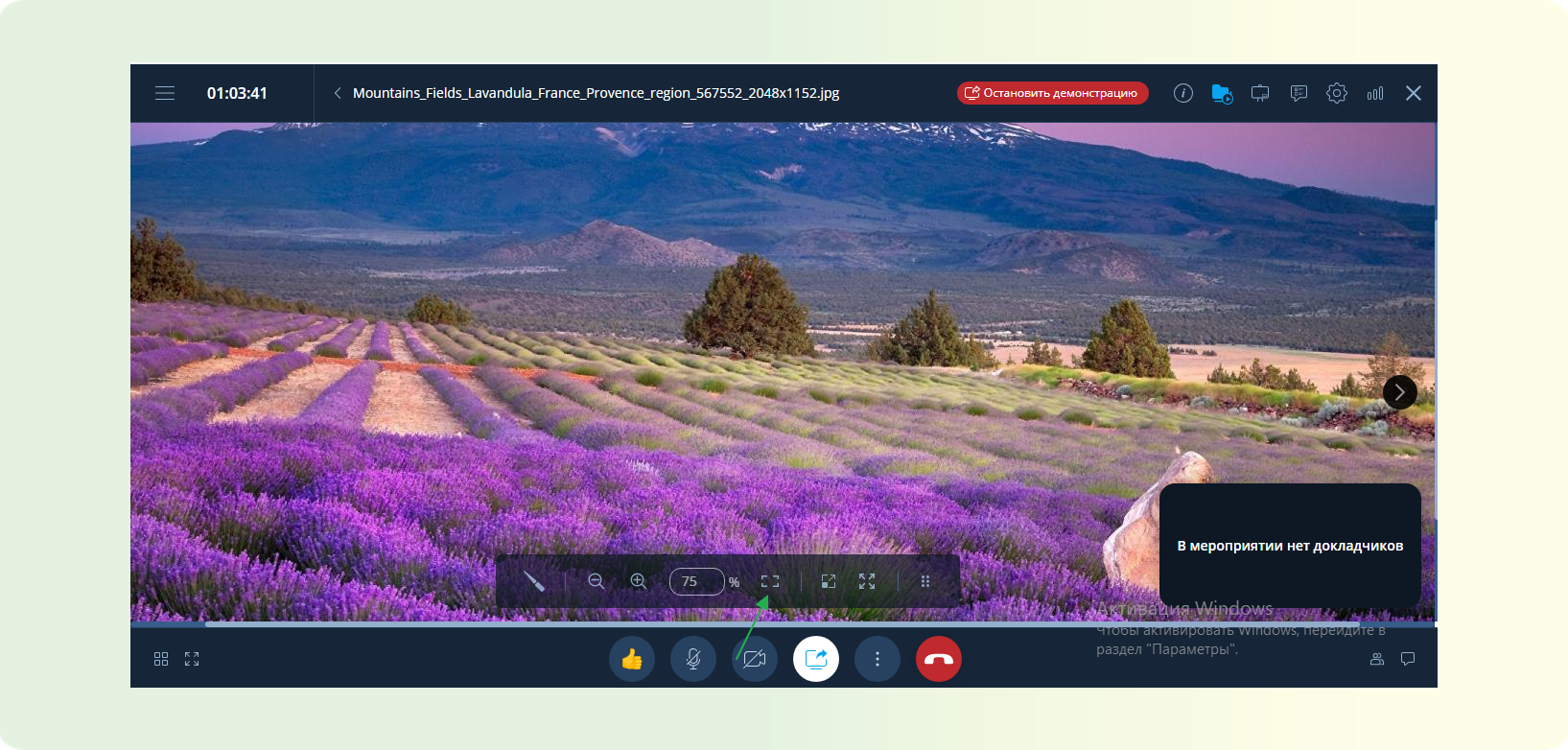 - Во время демонстрации можно воспользоваться инструментом "указка" для выделения важных моментов.
