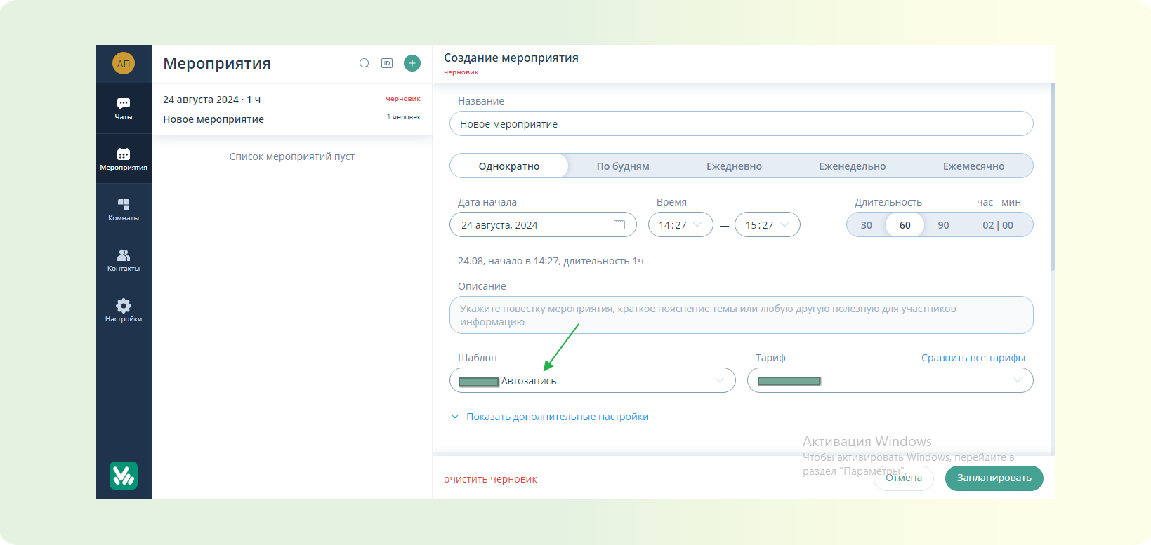 ШАГ 1: В функционале планирования мероприятия.